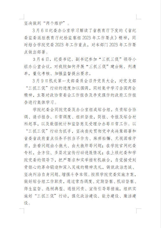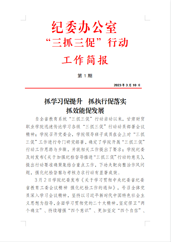 纪委办公室“三抓三促”行动工作简报(第1期)