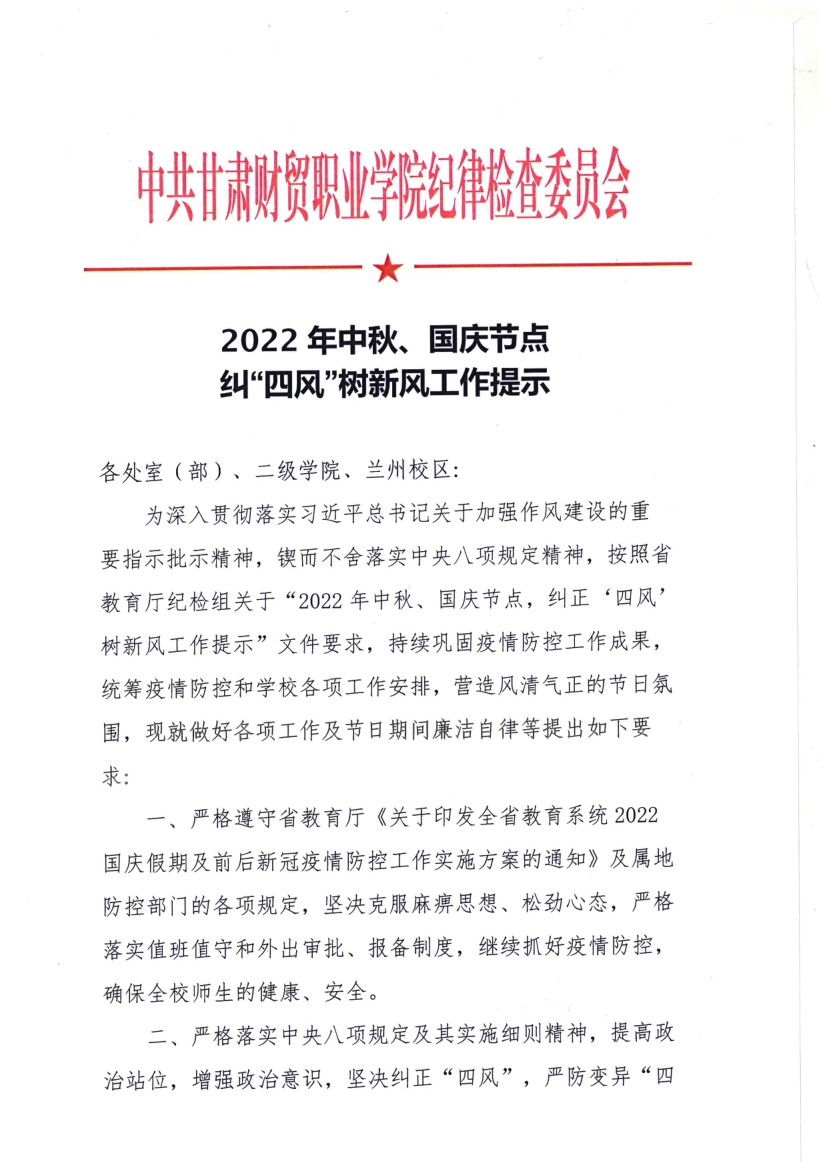 2022年中秋、国庆节点纠“四风”树新风工作提示