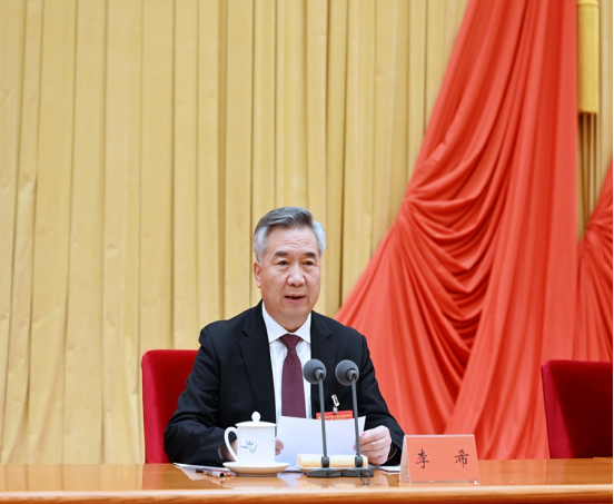 (中共中央政治局常委、中央纪律检查委员会书记李希代表中央纪律检查委员会常务委员会作工作报告。新华社记者 张领 摄)