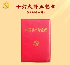 主要内容:十六大党章把“三个代表”重要思想同马克思列宁主义、毛泽东思想、邓小平理论一道,确立为党必须长期坚持的指导思想。主要作了十项修改:一,党章总纲部分,增加了关于党的十三届四中全会以来历史进程的表述,阐述了“三个代表”重要思想的历史地位和重要作用;二,对党的性质作了进一步阐述;三,结合中国实际对马克思列宁主义关于人类社会发展规律的表述作了新的概括;四,总纲中对我国新世纪新阶段经济和社会发展的战略目标和指导原则增加了新内容;五,对党的建设和党的领导提出了新要求,六,对党员队伍和干部队伍建设提出了新要求;七,对党的基层组织的有关规定作了补充和修改;八,对党的纪律检查机关的职责和任务作了补充规定;九,对中国共产主义青年团的性质作了进一步的表述;十,增写了党徽党旗一章。