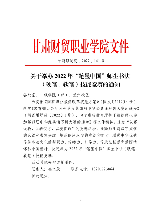 关于举办2022年“笔墨中国”师生书法(硬笔、软笔)技能竞赛的通知