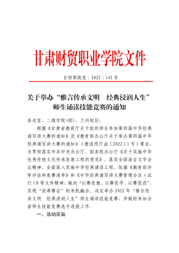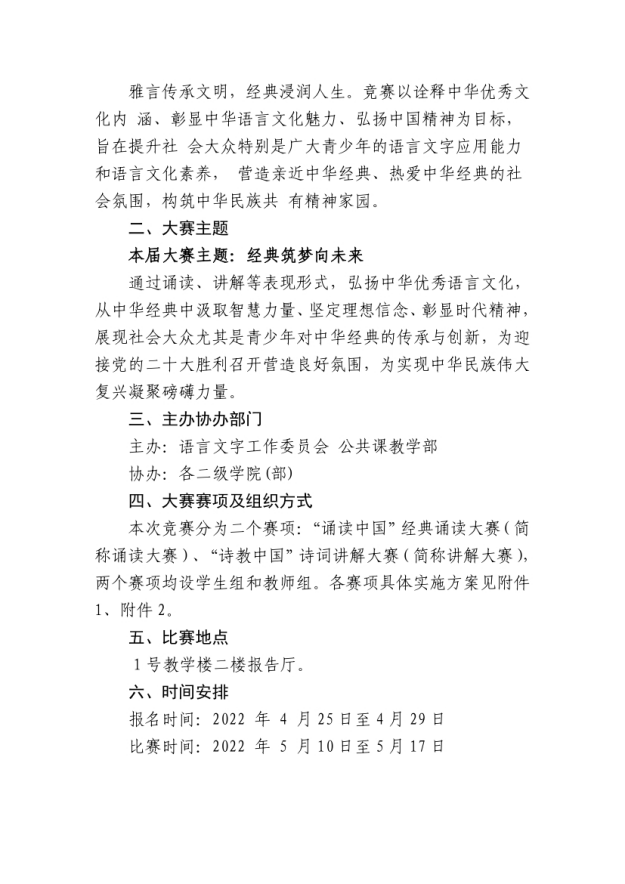 关于举办“雅言传承文明 经典浸润人生”师生诵读技能竞赛的通知