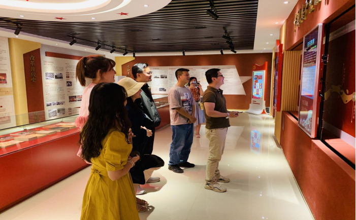 行程最后,抵达马克思主义学院党史展览馆,全体教师在新媒体的展示中重温党和新中国的峥嵘岁月。