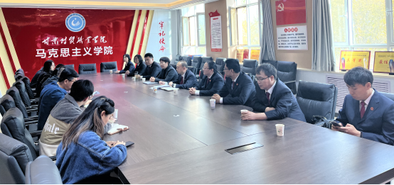 为深入学习贯彻落实党的二十大精神,全面落实立德树人根本任务,把思想政治教育贯穿人才培养体系,切实推进学院课程思政教育教学工作。2023年11月03日下午,甘肃省高院民事二厅相关领导及工作人员和甘肃人事达人力资源公司一行,莅临我院与我院公共课教学部开展支部共建与法务交流活动。公共教学党支部书记、公共课教学部相关负责人及我部门部分教师参加了此次活动。