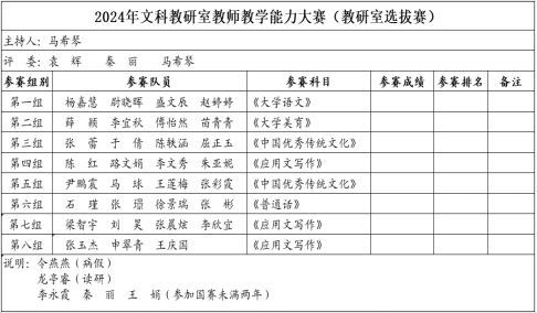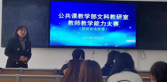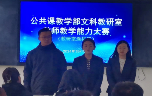为提高我校教师专业素养和教学水平,打造教学基本功扎实、综合素养高的师资队伍,促进教师专业成长,以赛促教、以赛促研,同时为参加全省教师教学能力大赛储备人才和力量,3月12日下午13时在第二教学楼B座101室,公共课教学部文科教研室教师教学能力大赛拉开帷幕。各参赛团队以扎实的基础、自信的风采,充分展示了我校青年教师的专业素养和教学风采。