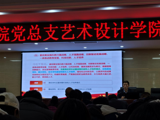 2024年10月29日,公共教学党支部、艺术设计学院党总支、应用工程学院党总支联合邀请学院纪委任世伟书记做了题为《弘扬践行教育家精神 勇做新时代高素质教育工作者》报告。任书记主要从“学习领会习近平总书记关于教育的重要讲话和论述精神”、“领悟中国特有教育家精神的深厚内涵”、“弘扬践行教育家精神 争做新时代高素质教育工作者”三个方面展开。