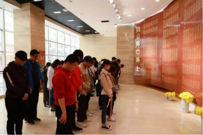 最后,大家来到英雄纪念碑前,这近千个名字正是当年抗战牺牲的英雄战士。在学生团委副书记李源同学的带领下,为英雄们庄严默哀一分钟。