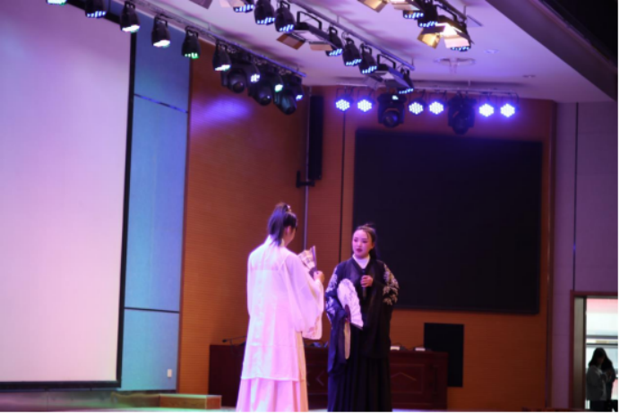 10月21日16:00,为弘扬中国传统文化,提高学生古典文化素养和人文情怀,作为学院首届“校园文化艺术节”系列活动之一的“古典文化”专场活动在第一教学楼二楼报告厅拉开帷幕。