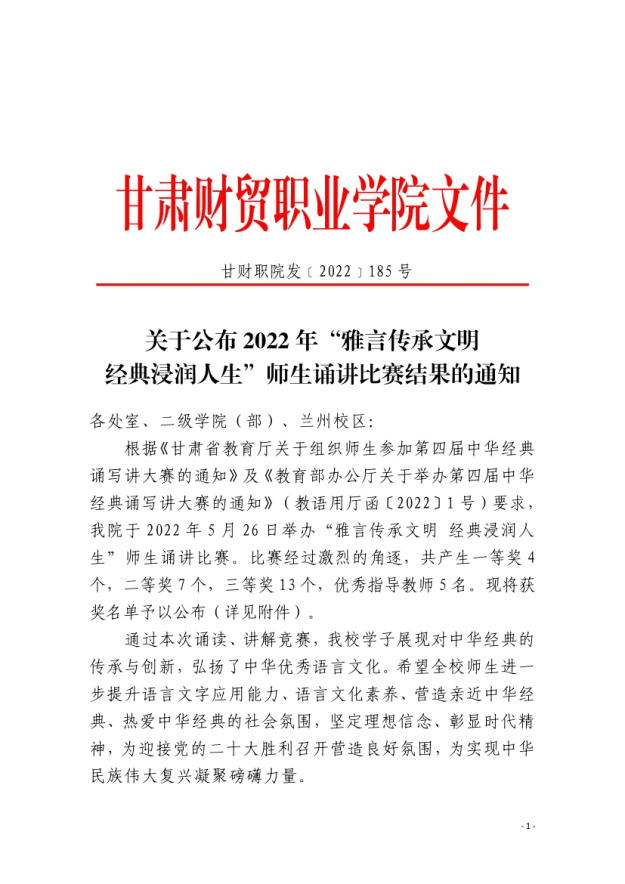 关于公布2022年“雅言传承文明 经典浸润人生”师生诵讲比赛结果的通知