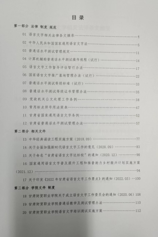 学院语言文字工作委员会明确工作职责,细化语言文字工作规划,不断完善语言文字工作具体措施,健全工作机制、强化全员考核。并通过在日常教育教学中坚持推进普通话和规范字、加强舆论宣传和规范窗口作用、创新活动载体、推动落实落细策划开展全员阅读活动、坚持服务社会与助力乡村振兴、创设宣传标语等一系列具体有效的重要举措,营造出浓厚的普及语言文字氛围。