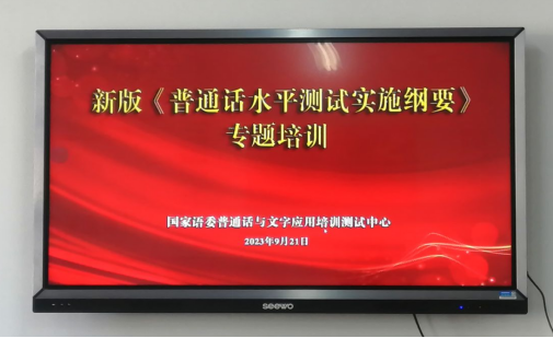 本次培训对新版《纲要》的修订思路和主要内容及《普通话水平测试成绩评定办法》进行了认真学习,为我院语言文字测试员全面熟悉新版纲要内容,及时补充更新测试知识,适应调整变化,保证测评质量,维护测试的公平公正提供了有力保障。