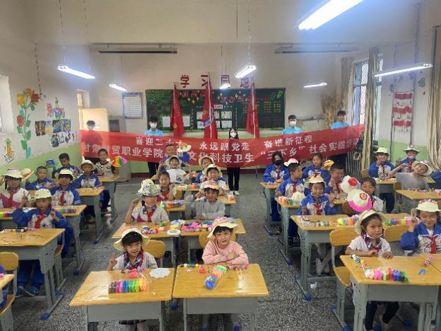 7月1日上午,实践团队走进金川区宁远堡镇宁远中学,与该校中小学生开展起了系列活动。生动活泼的“草帽绘画”手工课与青春活泼的趣味活动,迅速拉进了团队与小朋友之间的距离。