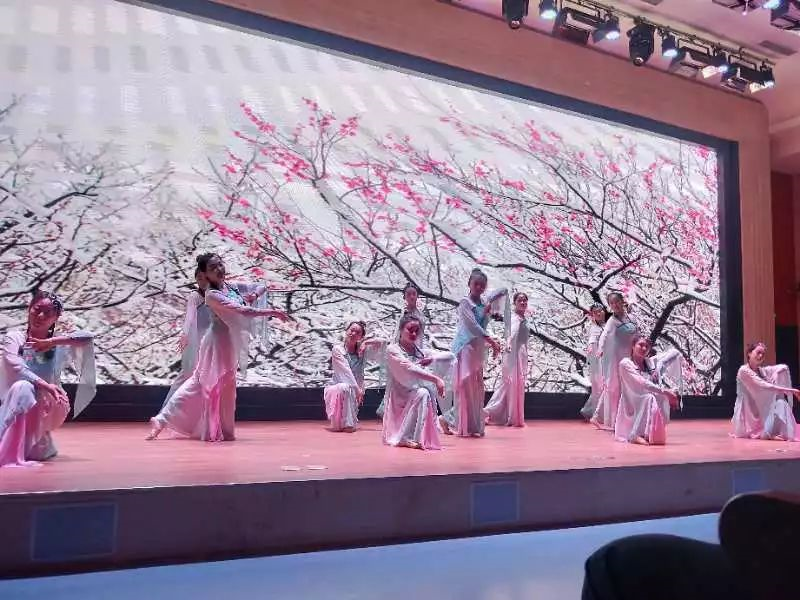 演出中,杨锐老师大力排练的四幕舞蹈为我院的节目锦上添花。美丽的女子脚尖轻点,一扬手,一回眸,便舞出了一片盛景。情景剧与舞蹈相辅相成,生动的诠释了“四季篇”的深刻内涵,赢得了满堂喝彩。