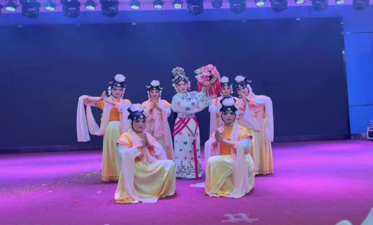 最后的压轴戏便是戏曲《天女散花》也正式将本次的活动推向了高潮,表演者展示了戏曲中的水袖等基本功法,精彩的演绎引得台下同学们连连叫好。