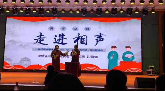 相声表演共有三场,《学歌曲》、《学外语》、《相声新时代》他们以幽默风趣的语言引导观众进入了一个欢乐的世界,其中的机智与活跃让台下观众欢笑连连。