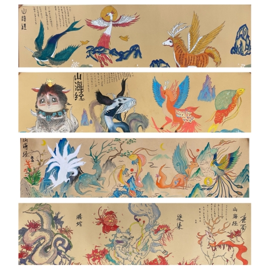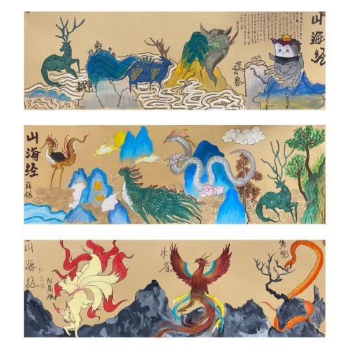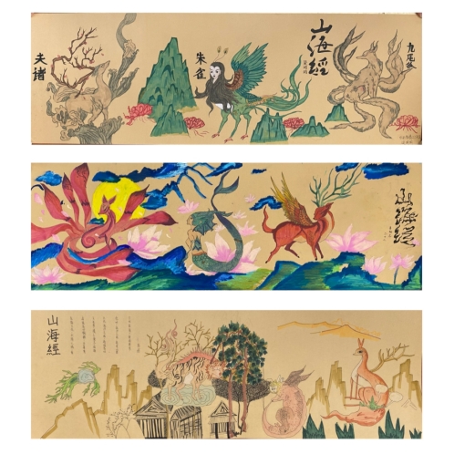 文字作为画面的一部分已是当代语境下文本重要的的一部分。同学经过自己的诠释,将《山海经》重新解读,绘制富有自己独特的绘画故事和语言,是一种开放语境的现代人文关怀。所以此次课程展示也不仅是一次作品呈现,更是读者与各位同学、与《山海经》之间的一次隔空对话。