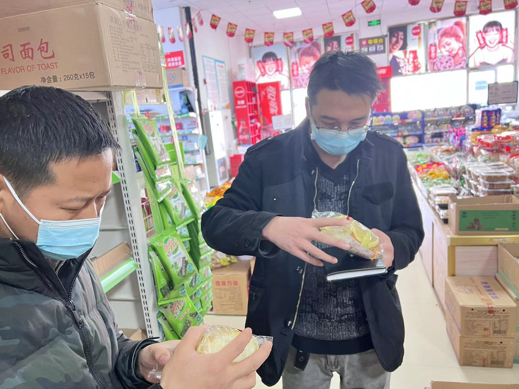 2.超市面包、奶制品等进行抽样检查中,未发现有过期食品。安保部门对临期食品提示要及时下架更换。目前,“老坛酸菜”类方便面均已下架。