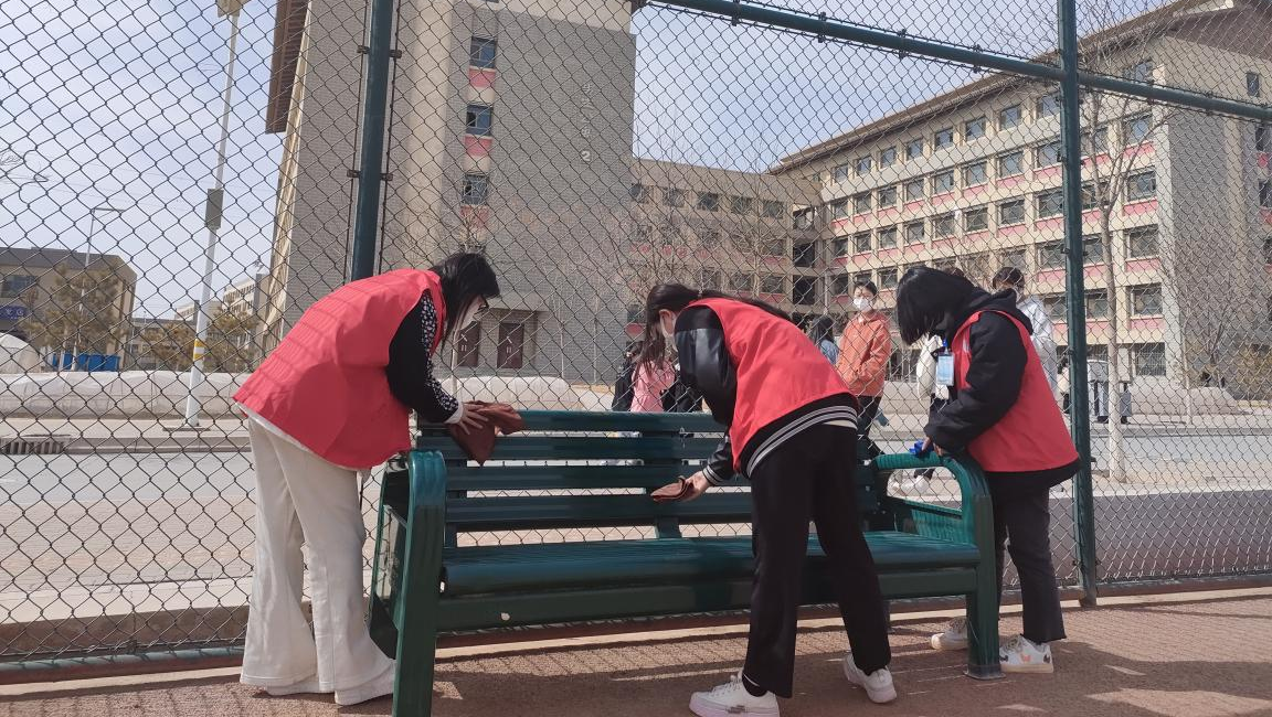 校园内响彻起了“学习雷锋好榜样,艰苦朴素永不忘”的雷锋歌。青年志愿者们身穿志愿者工作服,在教学楼、宿舍楼、学生餐厅、实训基地、操场等地开展了校园清洁志愿服务。