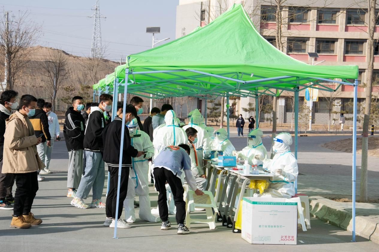 3月6日,兰州新区疫情形势再次严峻,抗疫警报再次拉响。为进一步强化校园疫情防控,校团委、学生会志愿者第一时间行动起来,迅速组织起来,在学院食堂、超市门口维持秩序、疏导人流,积极协助老师组织全院师生开展核酸检测。流动的“红马甲”成为校园里最醒目的青年力量。