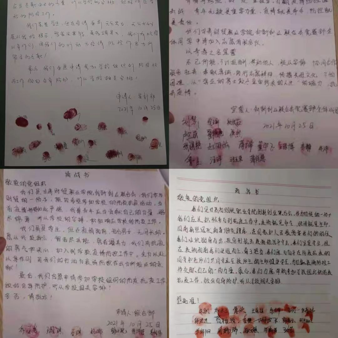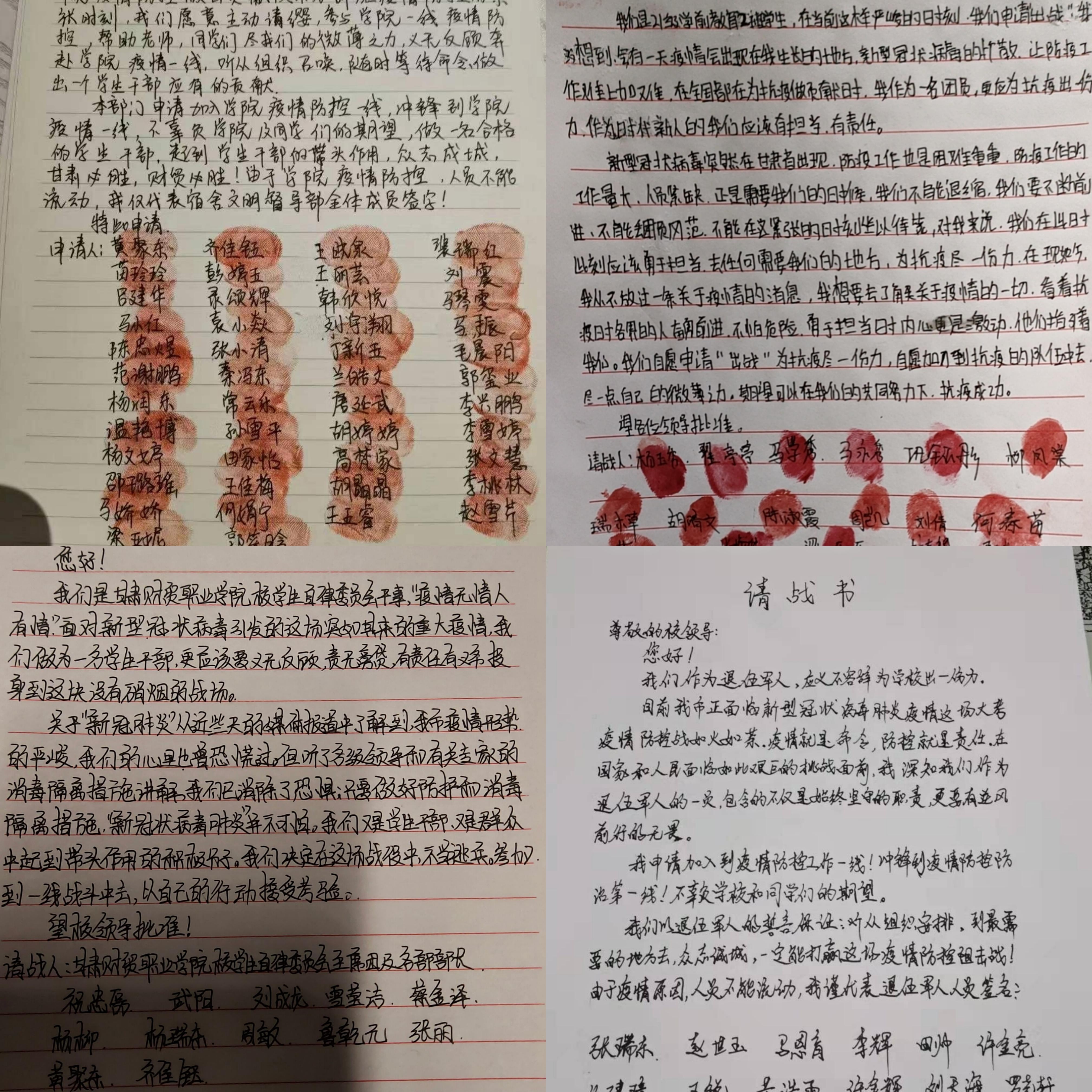 师者大爱,善者仁心,老师们用自己的行动,守护学生平安,感染了一个个热血青年,一封封请战书,一枚枚红手印,彰显着“00后”大学生的责任与担当,最美守护神,我们要在你们的带领下在奉献中飞扬!