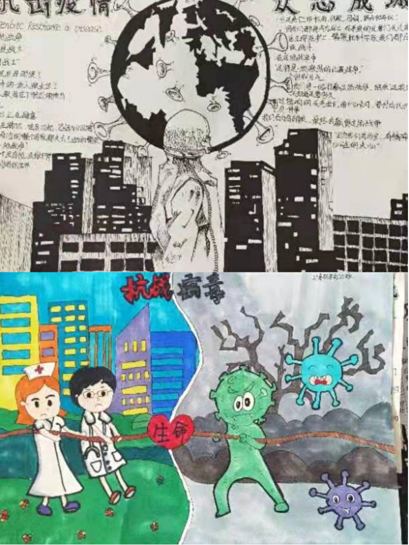 此外,各学院的同学在老师的带领下制作了精制的抗疫视频、创作海报、书写敬意、绘出心声......以“文艺作品”创作彰显“青春之我”担当。