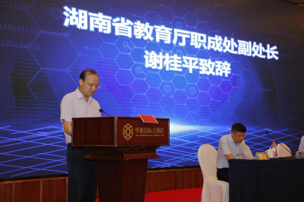 (湖南省教育厅职成处副处长谢桂平致辞)