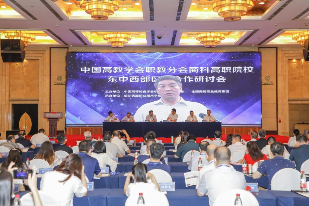 中国高等教育学会职业技术教育分会会长周建松,全国商贸职教集团名誉理事长、无锡学院党委书记杨建新,中国商经学会副会长兼职教分会会长、中国职业技术教育学会数字商务专业委员会执行主任、浙江商业职业技术学院院长张宝忠,全国商贸职教集团理事长、中国高等教育学会职业技术教育分会商科联盟理事长、无锡商业职业技术学院党委书记张志祥,浙江经济职业技术学院党委书记骆光林,湖南省教育厅职成处副处长谢桂平,长沙民政职业技术学院党委书记蒋晓明,长沙民政职业技术学院党委副书记、校长李斌出席,来自全国61家院校和企业,共150名嘉宾参会。