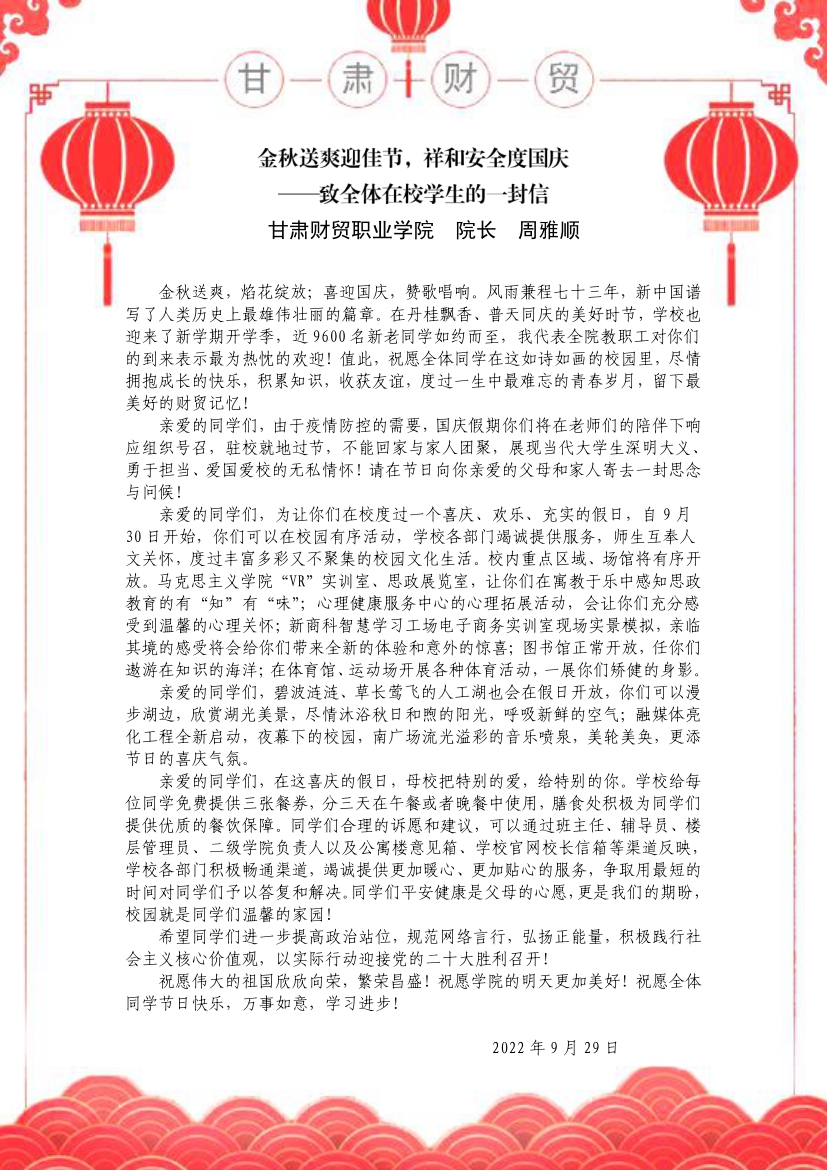 金秋送爽迎佳节,祥和安全度国庆