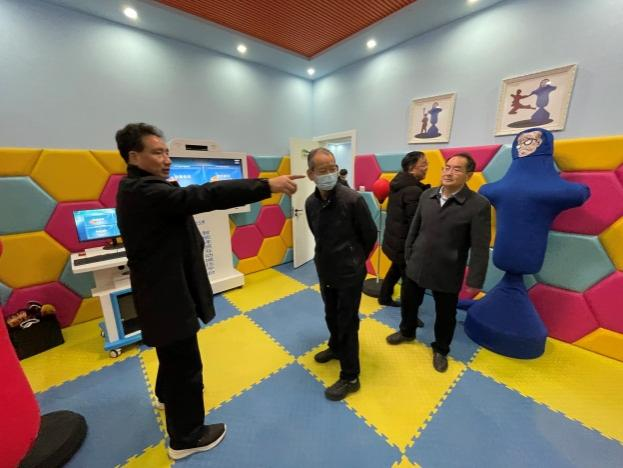 2021年12月7日上午,省财政厅教育事业处处长李平安一行到我院马克思主义学院、心理健康服务中心参观考察。学院党委书记周和平、院长周雅顺、副院长王庆华陪同。参加考察的还有学院财务处处长、应用工程学院院长。心理中心主任向大家详细地介绍了中心各功能室的功能以及户外心理拓展训练项目——健心小广场。