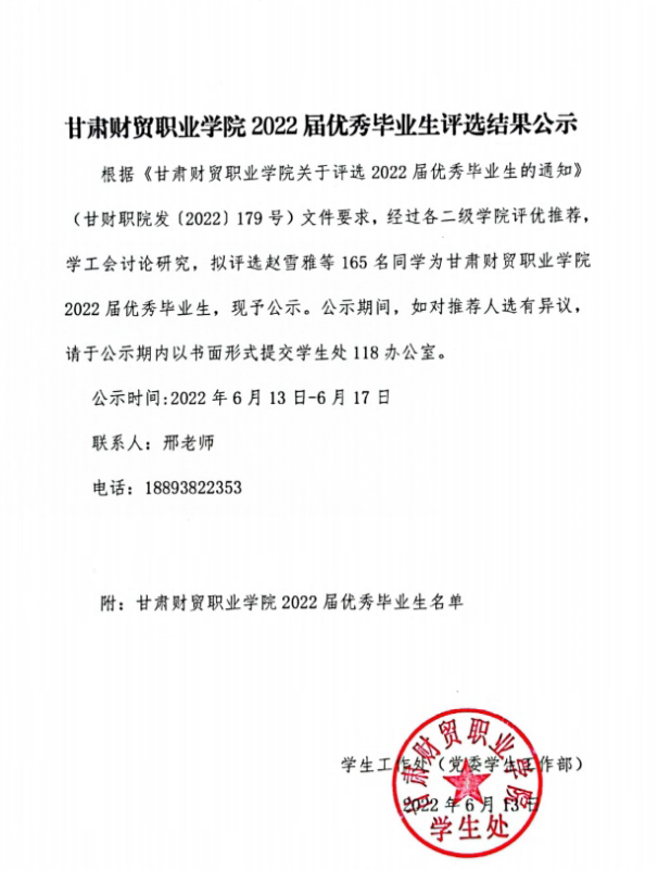 yl88858cc永利官网2022届优秀毕业生评选结果公示