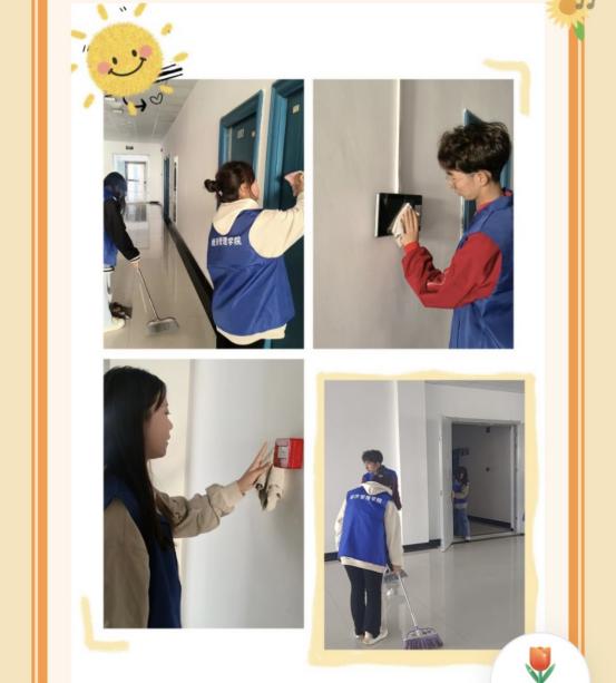 活动现场,志愿者们分工明确、紧密配合、合作有序、干劲十足,积极投身到清扫活动中去。志愿者们拿着抹布、扫把等卫生工具,坚持“全面、彻底、不留死角”的原则,秉承着不怕脏、不怕累、不怕脏的奉献精神,对教室的门窗、过道等进行了认真地打扫和擦洗。最后,同学们还把楼道内所有垃圾全部清理干净,用自己的实际行动为经济管理学院增添了一抹清新,一抹明亮。