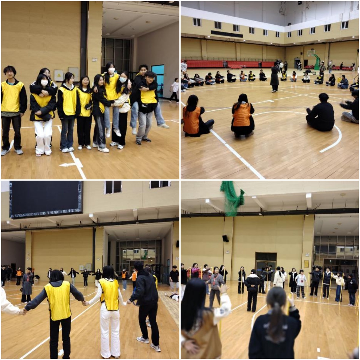 活动伊始,专业的拓展教练通过一系列轻松有趣的破冰游戏,打破了同学们之间的生疏感,营造了活跃欢快的氛围。在“团队建设”环节中,同学们自由分组,共同设计队名、队歌以及口号,充分展现出丰富的队名创意及独特的团队精神。