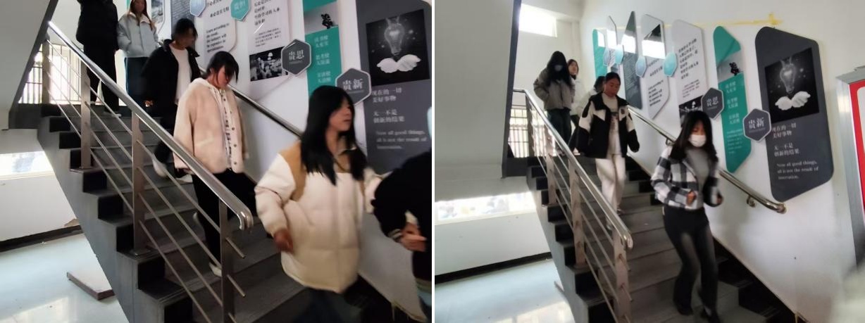 下午2点30分,消防演练正式开始。随着警报声响起,每层楼的楼梯口,都有负责引导的同学,按照指定路线安全快速有序地撤离至安全区域。在整个撤离过程中,没有出现拥挤、推搡的情况。整个过程紧张有序,仅用时3分12秒就完成撤离。到达安全区域后,立即清点了人数,确保所有同学都已安全撤离。