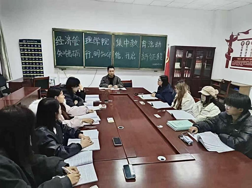为切实落实立德树人根本任务,推动学生教育管理从“简单惩罚”向“深度转化”,经济管理学院于10月23日晚在一教519室组织开展两周一次的集中教育学习活动。此活动由学院学管老师主持,围绕认知错误、学习规则、提升素养、规划未来等逻辑主线,构建起完整教育闭环,引导学生从反思过去迈向赋能未来。