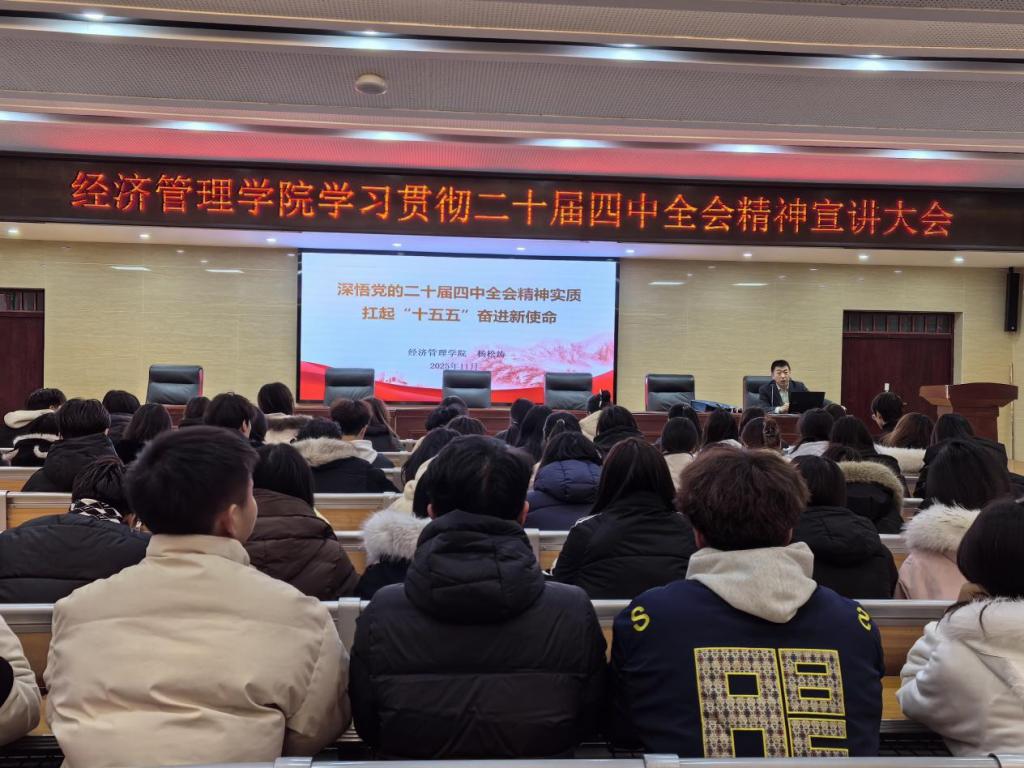 为深入学习贯彻党的二十届四中全会精神,加强青年学生思想政治引领,切实将全会精神与学院人才培养紧密结合,11月17日,经济管理学院党总支书记杨松涛面向全院入党积极分子,开展党的二十届四中全会精神宣讲。