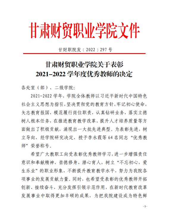 yl88858cc永利官网关于表彰2021-2022学年优秀教师的决定