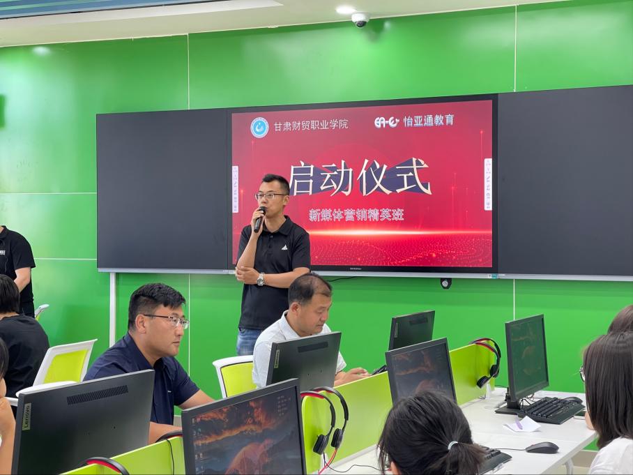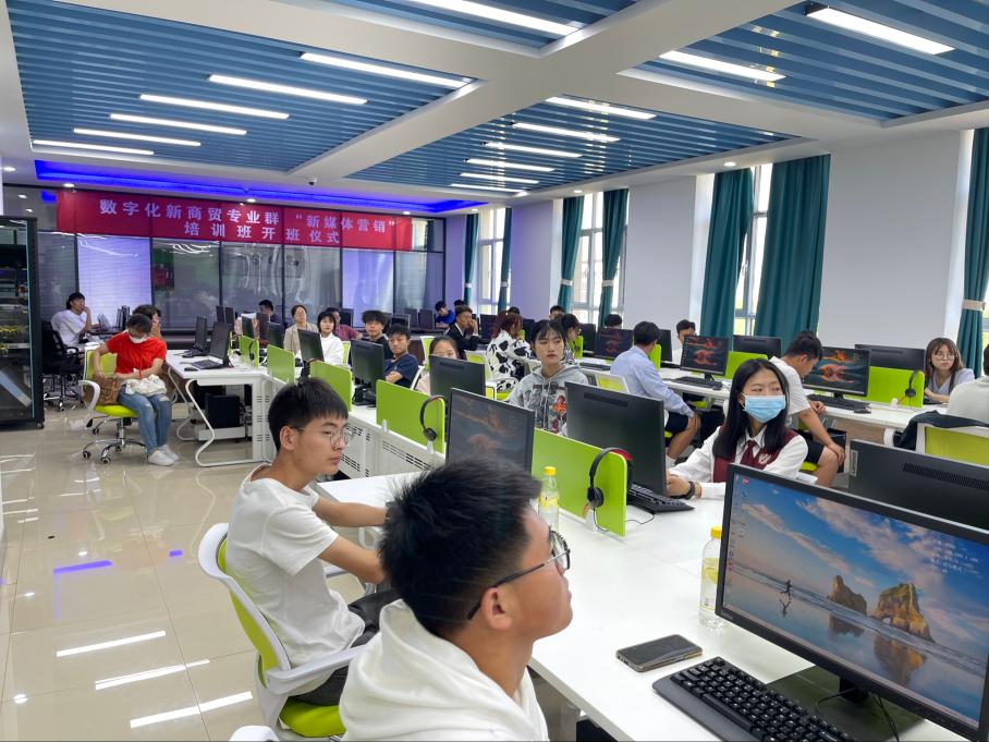 为了让学生体验真实企业的经营环境和工作过程,熟悉职场素质、职业能力要求,提升师生专业知识能力,掌握短视频制作、新媒体营销技能,数字商贸专业群建设项目“新媒体营销培训班”于6月13日上午举行开班仪式。yl88858cc永利官网副校长何科鹏、教务处处长李斌成、怡亚通麦小伟总经理、以及经济管理学院、物流学院、应用工程学院43名学生及相关教师在18#实训楼二楼培训室参加开班仪式。