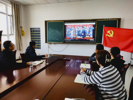全院广大师生仔细聆听习近平总书记所作的报告,认真记录、深受鼓舞。教师同志们表示通过今天的学习提高了认识、增添了干劲,自己一定要立足教学事业、积极作为,撸起袖子加油干,以永不懈怠的精神状态和一往无前的奋斗姿态把自己的本职工作推向前进。同学们通过今天的聆听更加坚定了中国志气、中国底气、中华骨气。同学们纷纷表示要以实现中华民族伟大复兴为己任,脚踏实地,勇毅前行。努力为中国之发展强大而读书,为早日实现中国梦提供青年力量。