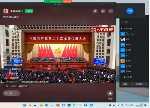 由于疫情原因,不能到校的教师们通过钉钉会议共同观看、学习党的二十大开幕会。