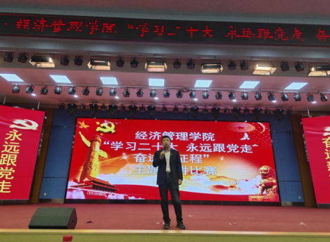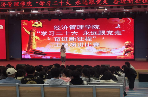 为深入学习贯彻习近平新时代中国特色社会主义思想,全面贯彻落实党的二十大精神,引导新时代青年大学生自信自强、守正创新,用实际行动践行“请党放心,强国有我”的铮铮誓言。3月20日,经济管理学院举行了“学习二十大 永远跟党走 奋进新征程”主题演讲比赛。