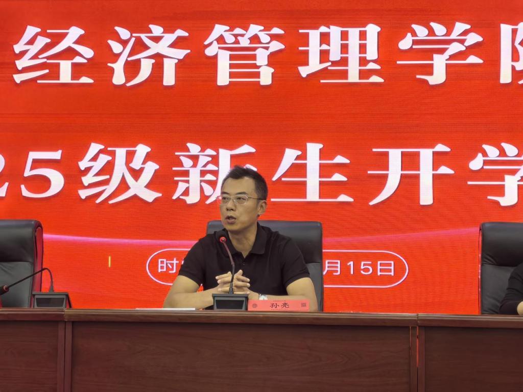 怀热忱,启新篇。9月15日下午,经济管理学院2025级新生开学典礼在一教二楼报告厅隆重举行。学院领导班子成员、新生班主任、辅导员及2025级全体新生齐聚一堂,共同见证新“经管人”开启人生新篇章。典礼由学院学管院长朱海龙主持。
