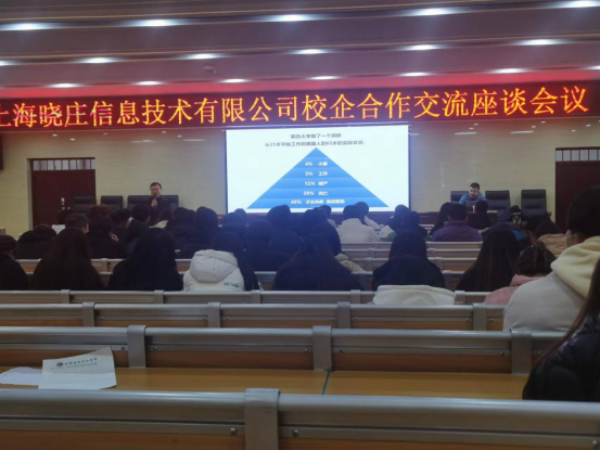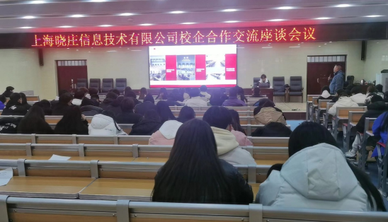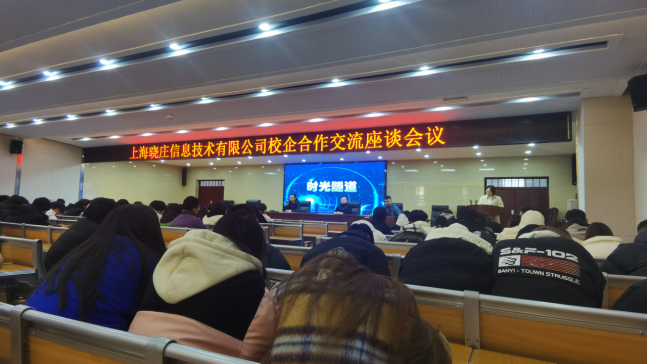 产教融合是推动教育与产业发展紧密结合的重要途径,校企合作则是实现产教融合的关键。为进一步优化专业建设,加强校企合作,推动产教融合走深走实,积极构建校企“共建共享”的良好局面。经济管理学院与上海晓庄信息技术有限公司于2023年12月19日(星期二)下午2点30分召开了校企合作交流座谈会议。交流座谈会在一号教学楼西报告厅举行。经济管理学院相关领导及22级高职电子商务专业学生出席会议,座谈会议由经济管理学院副院长陈娟主持。
