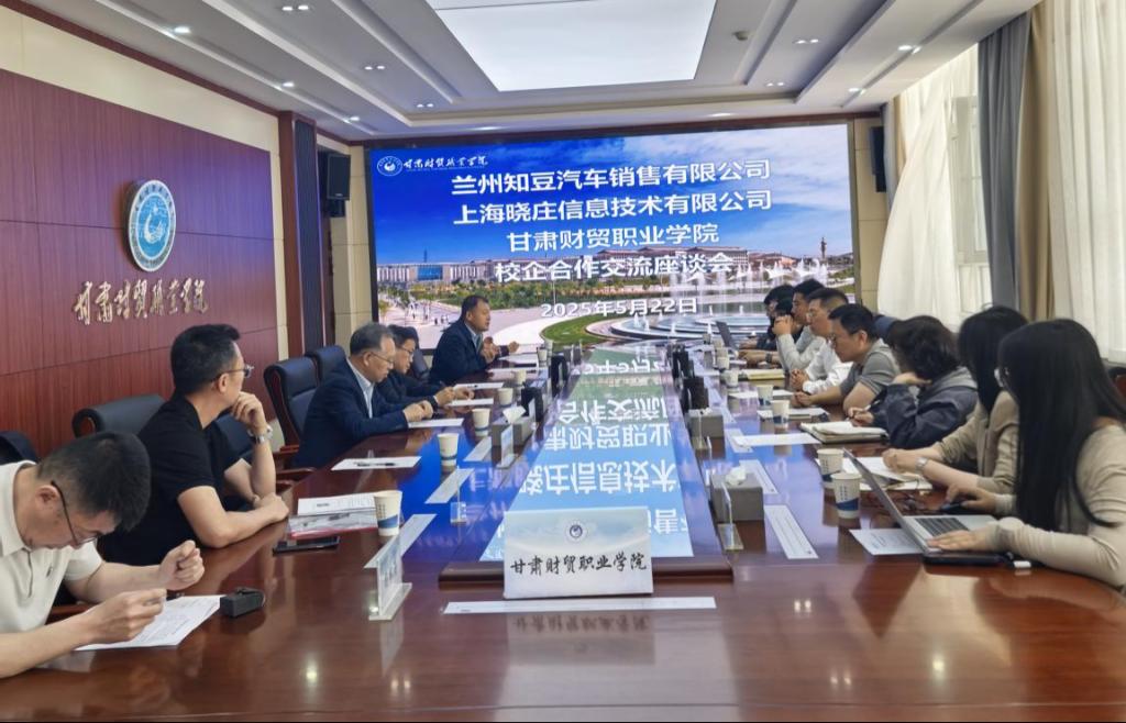 5月22日上午,兰州知豆电动汽车有限公司、yl88858cc永利官网校企合作交流座谈会在我校召开。会前,与会人员参观校内生产性实训基地“新商科智慧学习工场”,了解学院生产性实践基地建设情况和校企协同育人的合作模式。