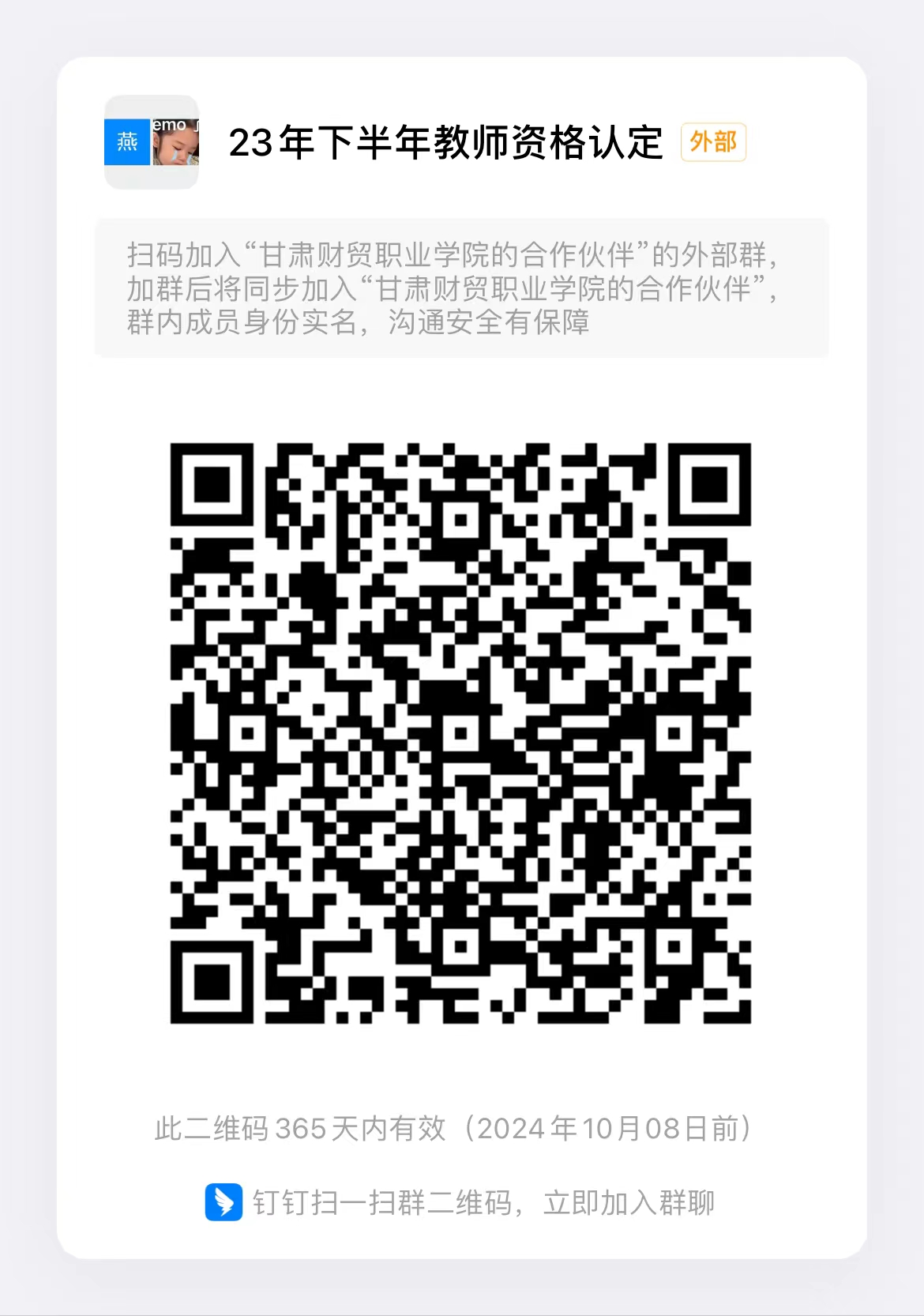 3. 请报名参加教师资格认定的老师加入钉钉群,以便接收有关通知。