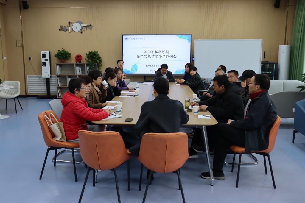 为进一步加强教学质量保障体系建设,提高教育教学水平,践行使命担当,助力高质量发展,11月12日,教师发展中心在20号教学楼A座5楼教师共同体会议室召开2024年秋季学期第二次教学督导工作会议,全体教学督导及教师发展中心工作人员参加,会议由教师发展中心主任李燕主持。