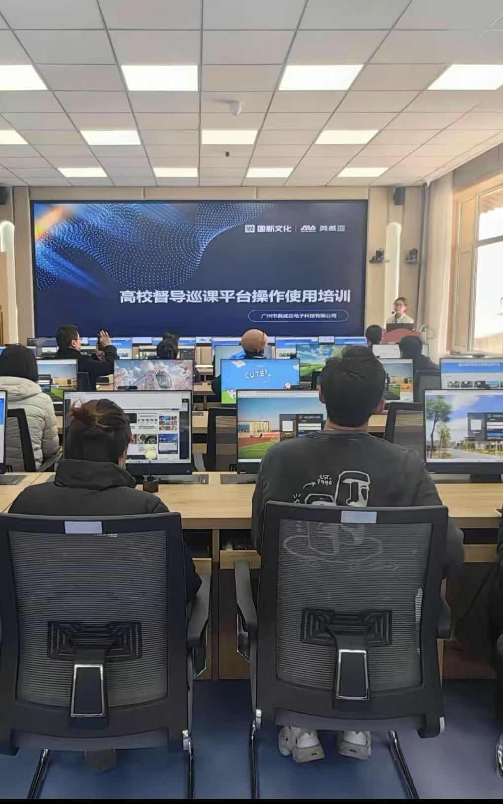 本次培训聚焦高校督导巡课平台的操作流程与核心功能。奥威亚高校督导巡课平台的工程师受邀现场详细介绍了平台功能,视频资源建设,学校教学评估,教学质量管理和课堂秩序管理,演示了如何根据课表、教师、教室等不同索引方式实时巡课——通过手机终端或电脑登录进入课堂开展听评课、查阅相关数据分析,并与学院督导们进行了交流答疑。