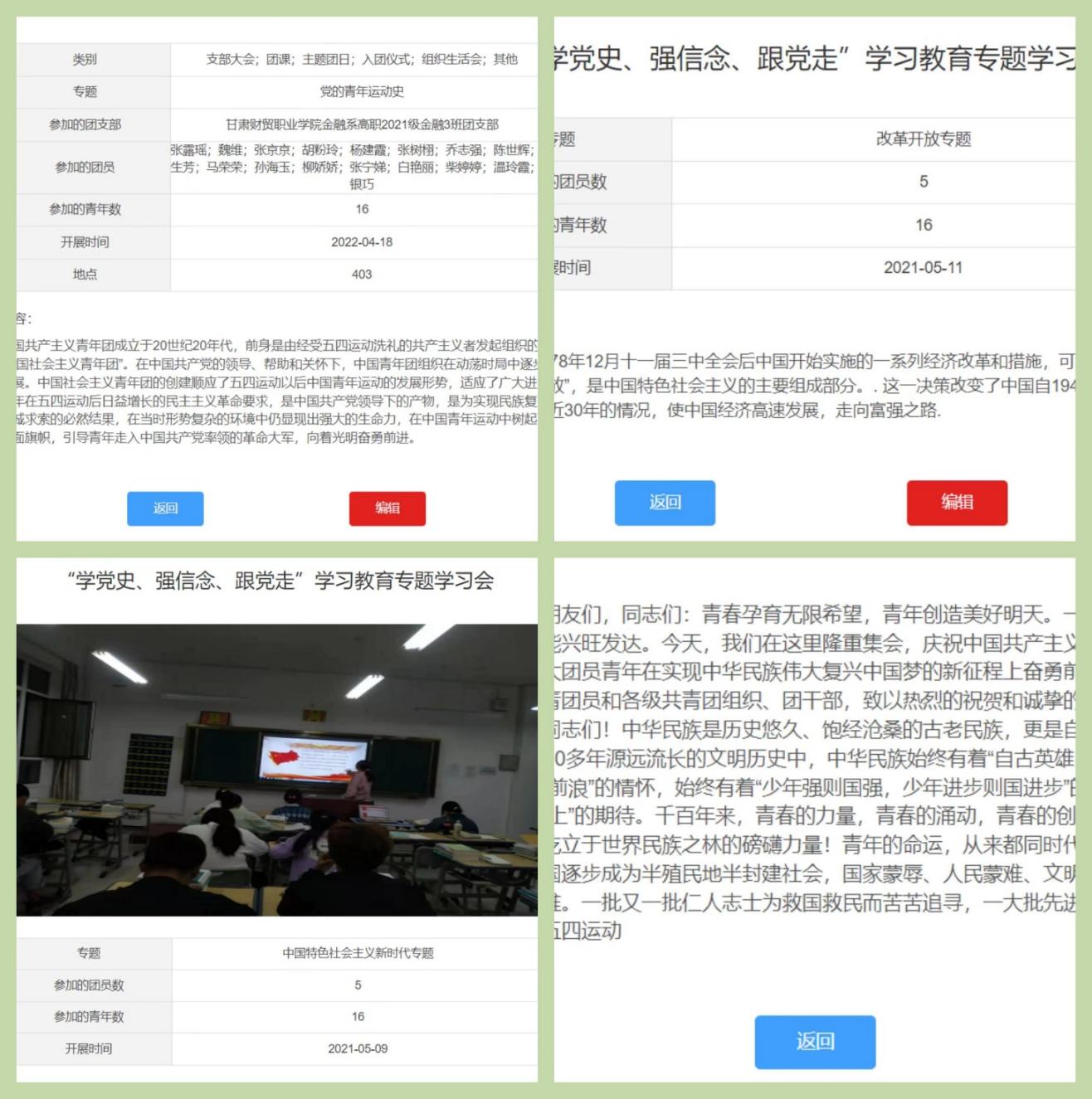 加强政治理论学习,积极参与实践,筑牢理想信念根基。2021级高职金融服务与管理3班团支部累计开展思想学习活动15次、团组织生活会3次、团日活动3次,形成“多形式 、多载体 、全方位 ”的思想政治学习方式。在新冠病毒肆虐的艰难时刻,青年一代与祖国同行,与疫情奋战到底。支部及时开展线上思想政治学习,号召支部志愿者积极参与学校、社区疫情防控工作,展示了新时代青年最美风采。