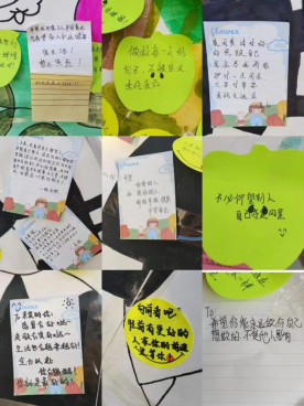 活动期间,同学们可以把困扰自己的问题、疑惑、情绪写在纸上,贴在展板上寻求帮助,也可以把内心的愉悦和美好的祝愿投进盲盒,与其他同学分享。因此在活动中,专门放置了一个“安慰”盲盒,同学们可以在安慰盲盒中抽取一张便签,在阅读他们的烦恼或分享他们的喜悦后,下一张鼓励便签或自己想分享的趣事、话语等放回盲盒中进行循环。活动的开展仿佛一个释放消极情绪的窗口,以匿名的方式释放出自己内心的不快、疑惑与情绪,及时让同学们停止内耗,告别焦虑,坦然地面对负面情绪,感受身边的爱与温暖,认真享受生活,为同学们树立了健康的价值观。