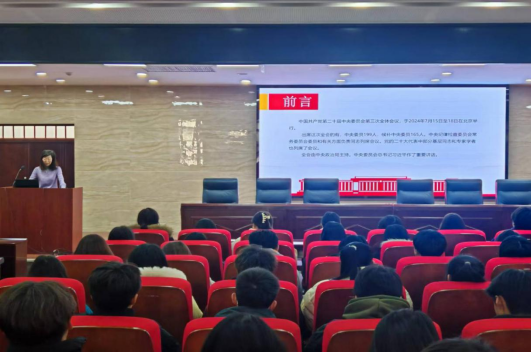12月19日,会计金融学院在第一教学楼东报告厅组织开展了“学习贯彻党的二十届三中全会精神”主题宣讲活动,邀请了马克思主义学院王一和包安朦老师进行宣讲,辅导员和学生代表参加了学习活动。