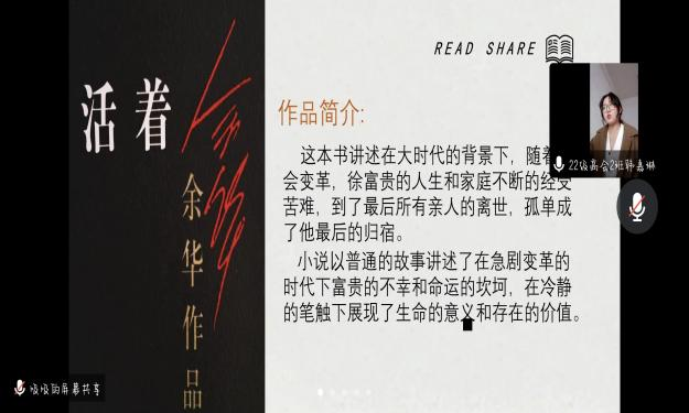 参加读书分享会比赛的同学每人都精心准备了PPT,在比赛过程中同学们都对自己分享的书籍有独到的见解和不同感悟。评委老师们认真聆听了每位同学的分享,陪伴同学们一起在书海之中遨游,体会同学们心中不一样的“书”途之旅。通过本次比赛,共有8名同学脱颖而出进入了校级决赛。